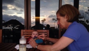 Grandma fed Jesse oatmeal at her oceanside villa.