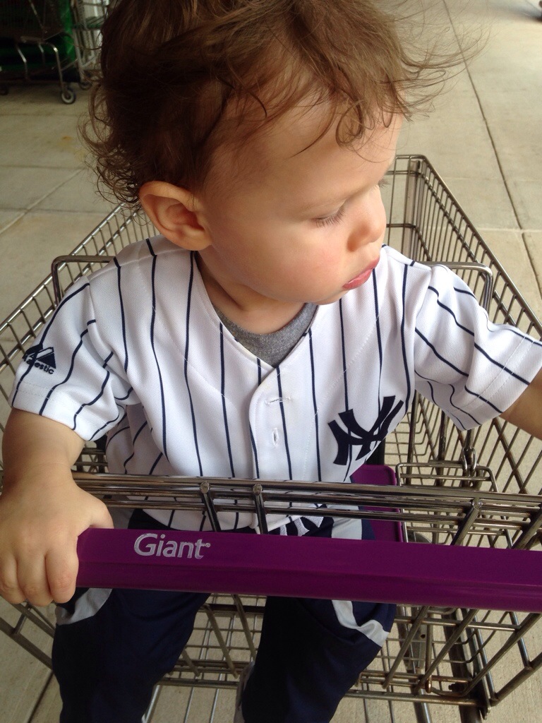 Jesse dressed as a Yankees fan. Here he is after school (same clothes at the end of the day!).