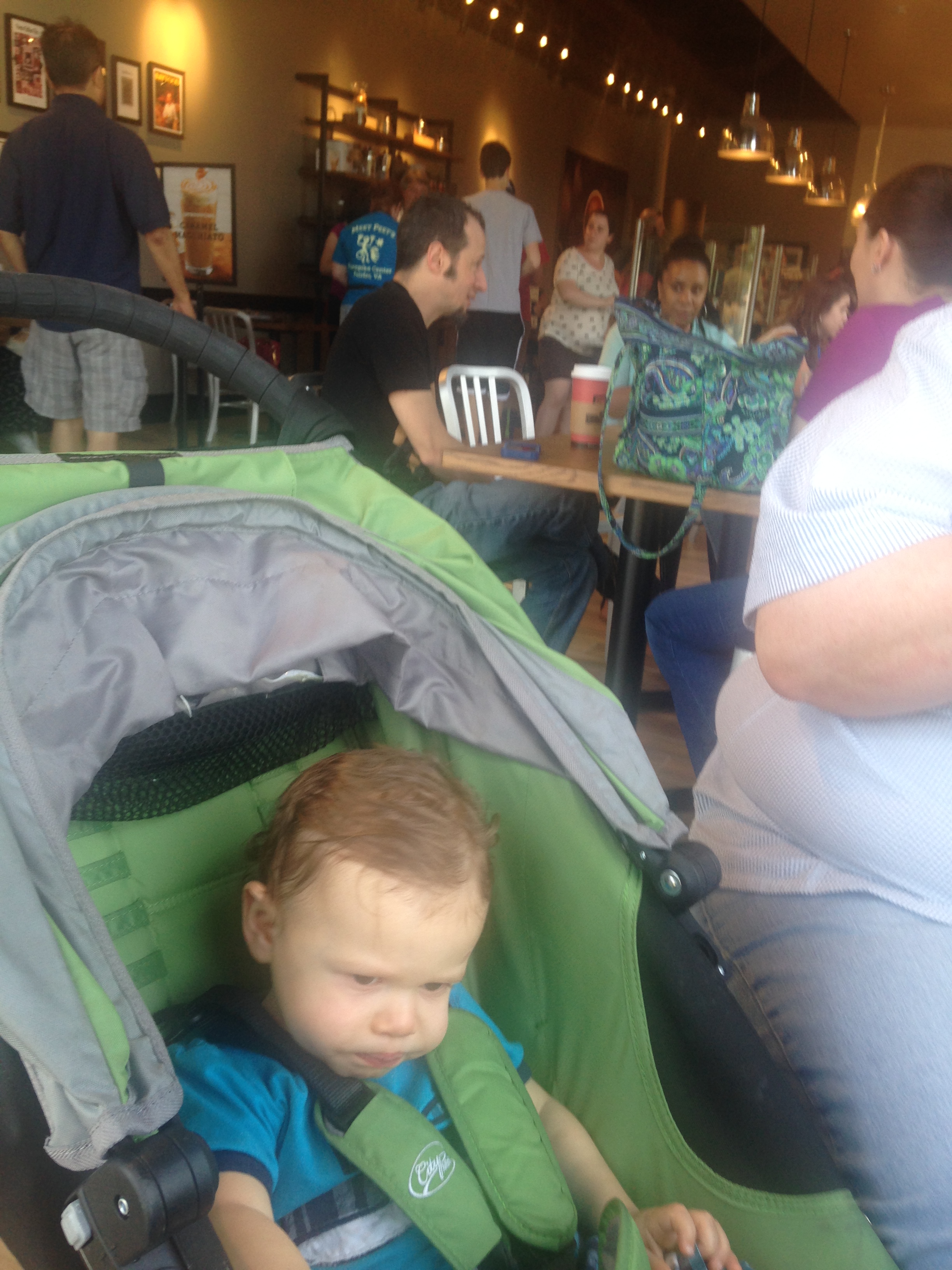 We went to the Peet’s Coffee in Fairfax, where Janella works, and had free samples at the soft opening, including some cheese and crackers for Jesse. (He’s making a face, but he enjoyed himself.)
