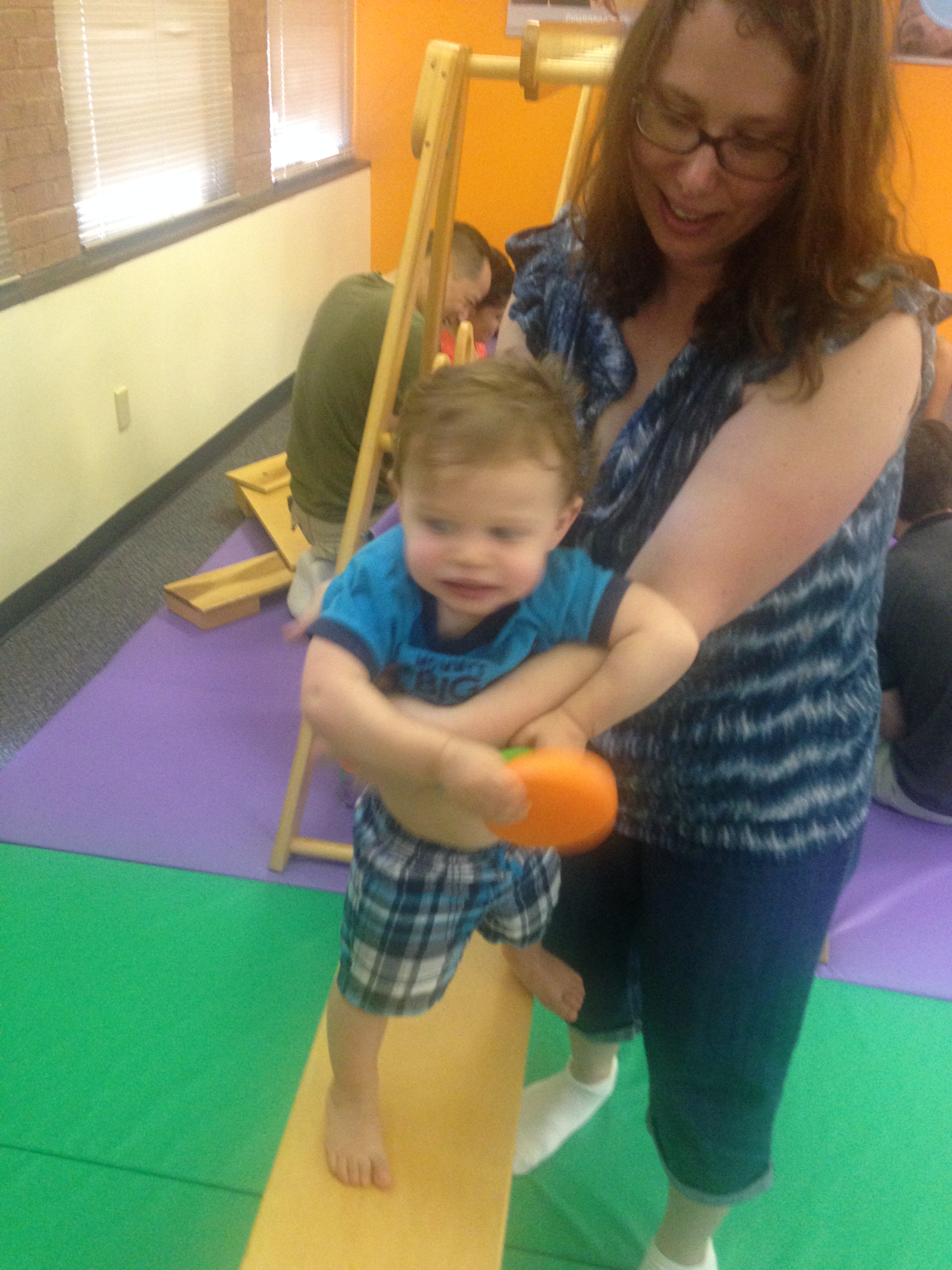 After a few slices of pizza at Mama Lucia’s (where we told Jesse — and the owner — that we decided on his name at the neighboring table), we hit Gymboree, arriving a few minutes late. We didn’t get to hear the welcome song, but we dove right in.