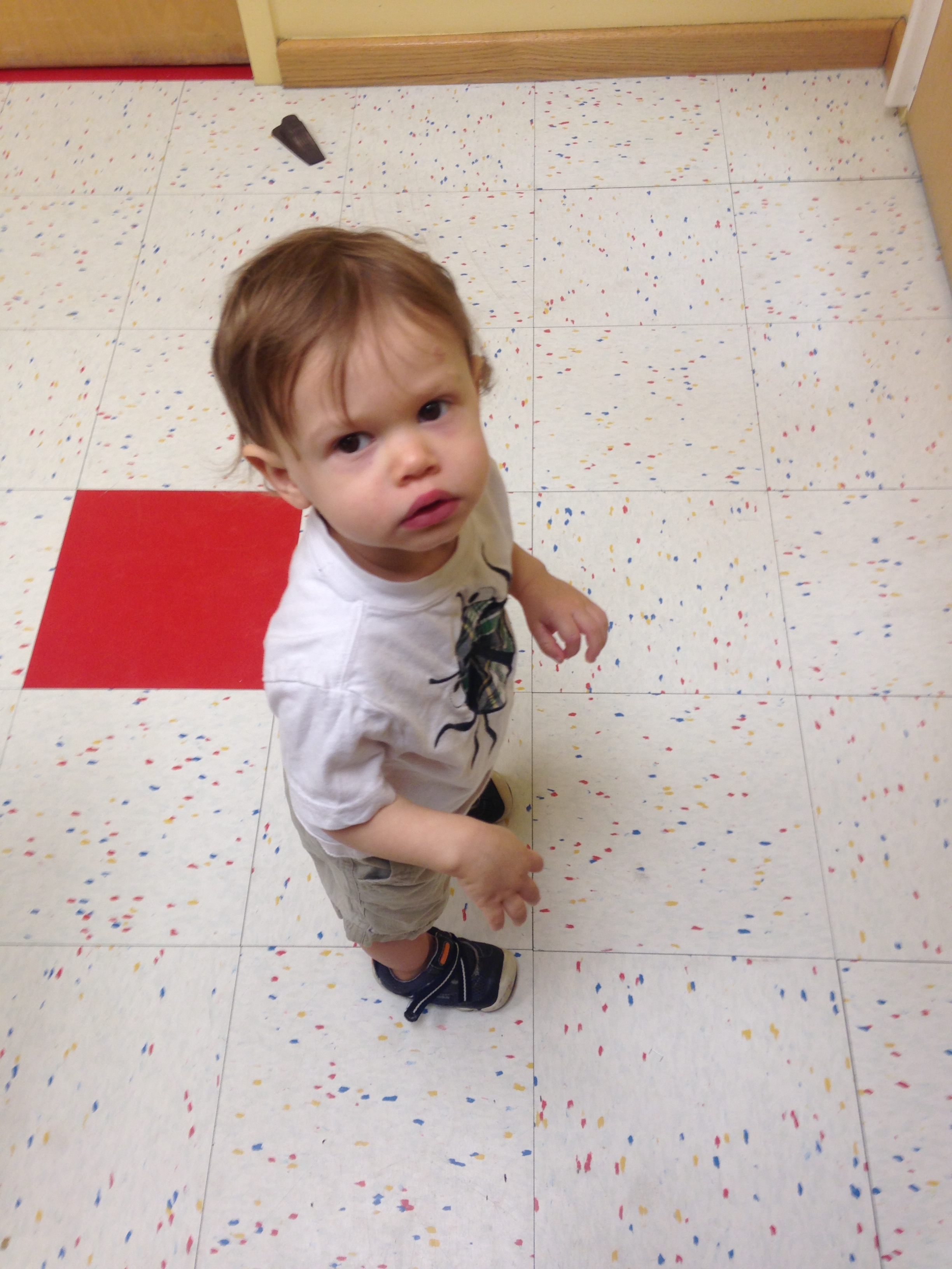 Jesse has transitioned to the toddler room at day care, and today was his first day.