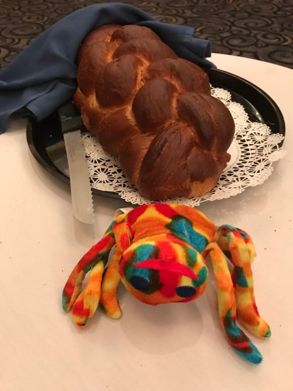 Sammy the Spider and Jesse on Winter break: Shabbat service in Florida Posted on January 5, 2019 by therafaelfamily Reply Jesse attended his friend’s bat mitzvah service and brought Sammy — we took photos during the luncheon (kiddush)