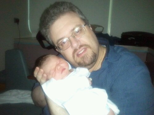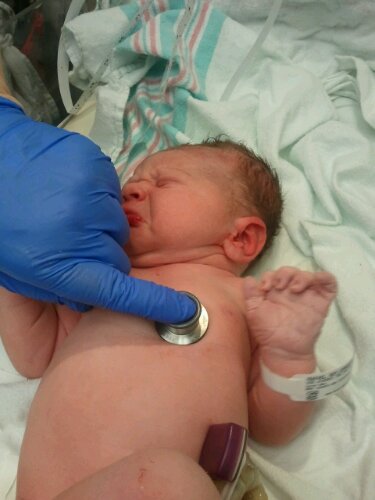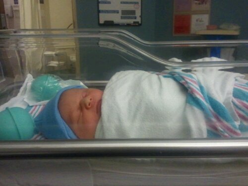 Dan watched the cleanup and first-moments testing as NICU staff checked Jesse over. He clocked in at 7 lbs., 7 oz., and 21.75 inches, not bad for about a week early.